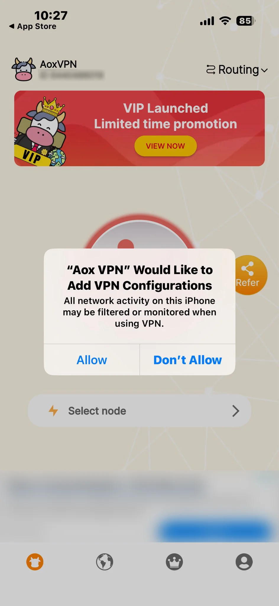This may means that there is an older version of AoxVPN on your phone, which has conflict with the App Store version. To solved this: Delete the old version and reinstall the new version.