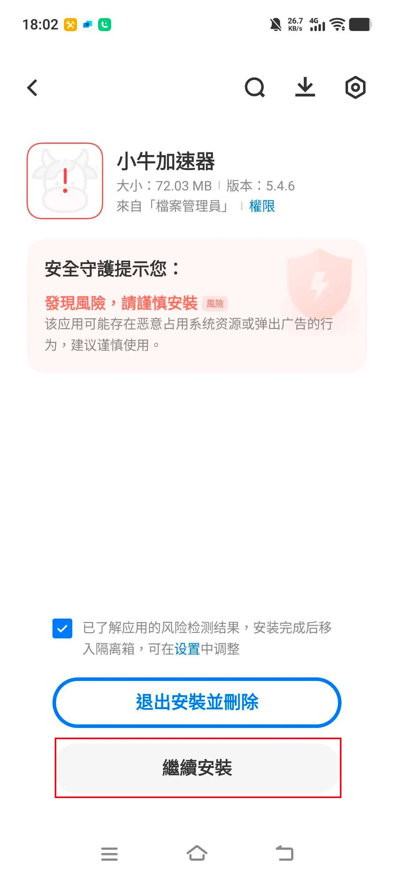 點擊「已瞭解應用風險檢查結果」。